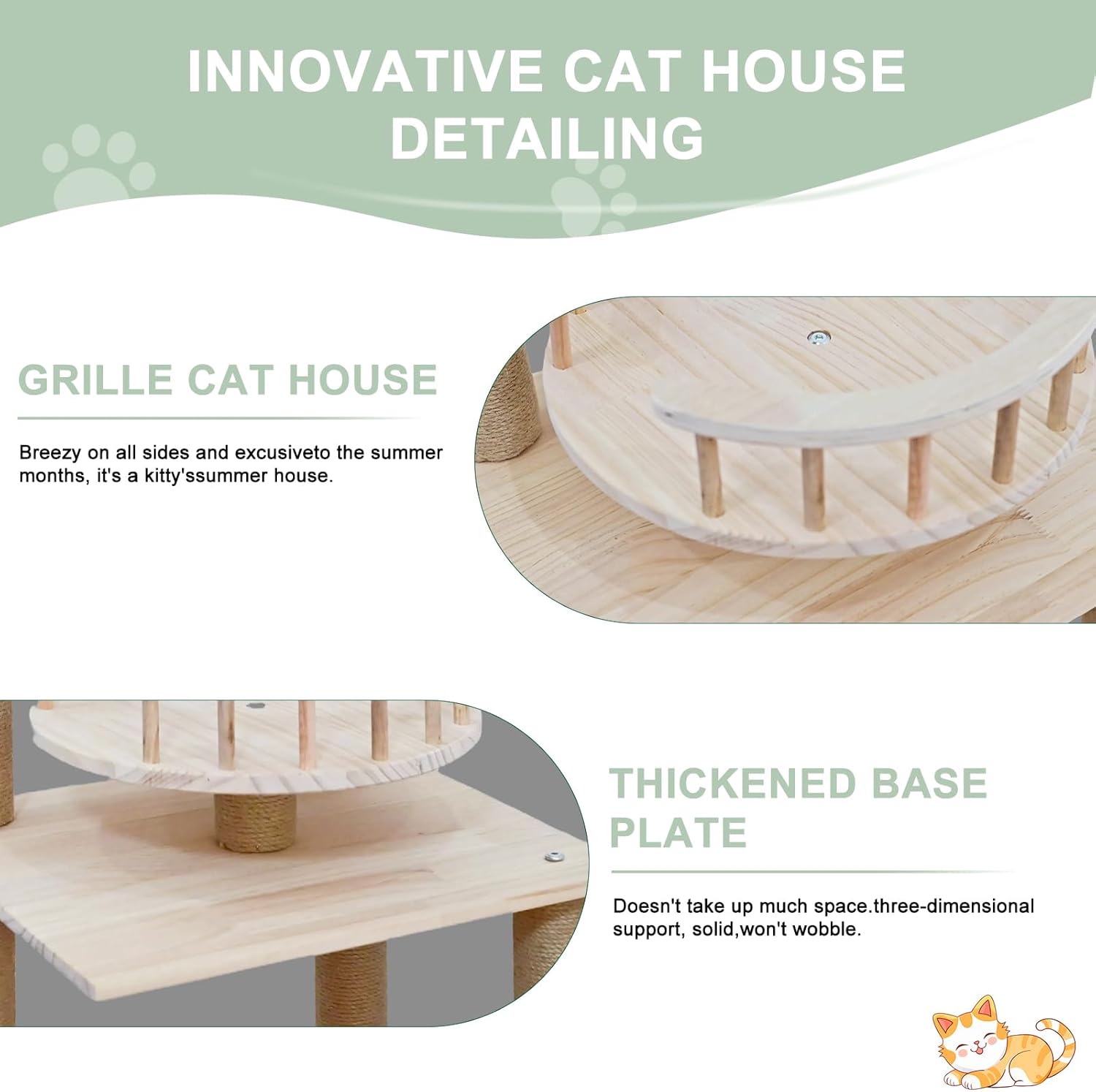 - 【Easy to Assemble】It has no tedious assembly steps or excessive parts. Please install and tighten all parts correctly according to the installation manual (or diagram). Incorrect installation may cause the cat tree to shake slightly, which could lead to your cat falling while climbing. If you have any questions about this wooden cat tree tower, please feel free to contact us—we will follow up on your questions until they are resolved.