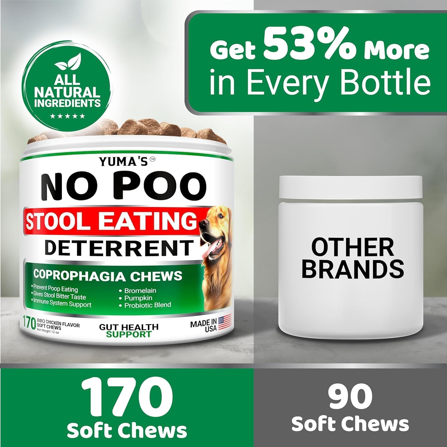 YUMA'S No Poo Chews for Dogs - 170 Count - Coprophagia No Poop Eating Deterrent for Dogs - Stop Eating Poop for Canine - Gut Health - Probiotics & Digestive Enzymes Supplement - Made in USA