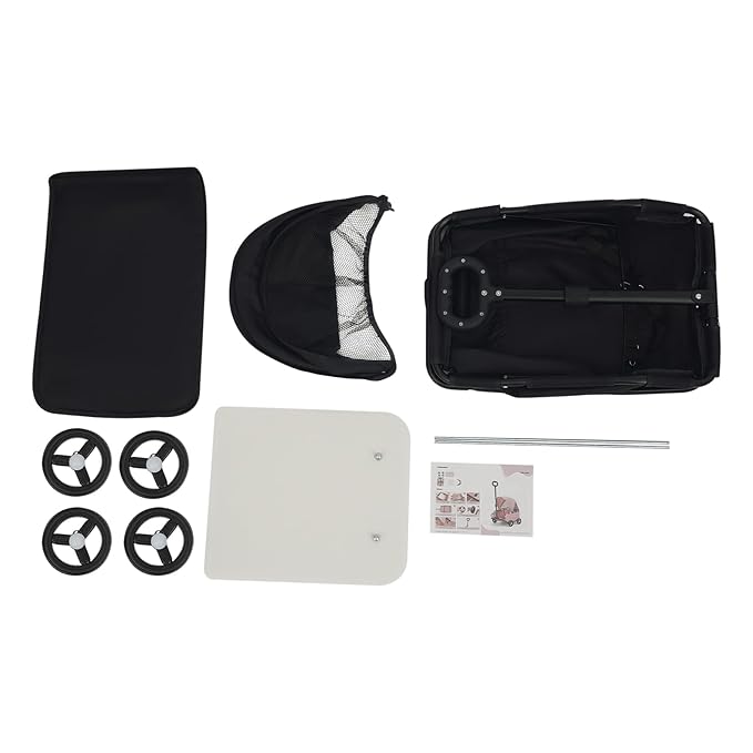 - 🐕Safety Features: Enjoy effortless control with an ergonomically designed, height-adjustable handle and four smooth-rolling wheels that ensure easy maneuverability on varied surfaces. An integrated safety belt keeps curious or energetic pets securely in place, preventing jumps or falls, while the sturdy frame offers reliable stability during movement